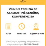 Kviečiame visus Vilniaus Gedimino technikos universiteto studentus į VILNIUS TECH SA AIF ataskaitinę – rinkiminę seniūnų konferenciją, kuri vyks spalio 8 dieną (trečiadienį)S4 (SRA-II) A07 auditorijoje19:00Konferencijos darbotvarkė: Kviečiame susipažinti su kandidatais į VILNIUS TECH SA AIF pirmininko pareigas! Perskaityk kandidatų motyvacinius laiškus, gyvenimo aprašymą:Aistė Adomavičiūtė:Motyvacinis laiškasGyvenimo aprašymasSENIŪNŲ AR JŲ DELEGUOTŲ ASMENŲ DALYVAVIMAS KONFERENCIJOJE – PRIVALOMAS…