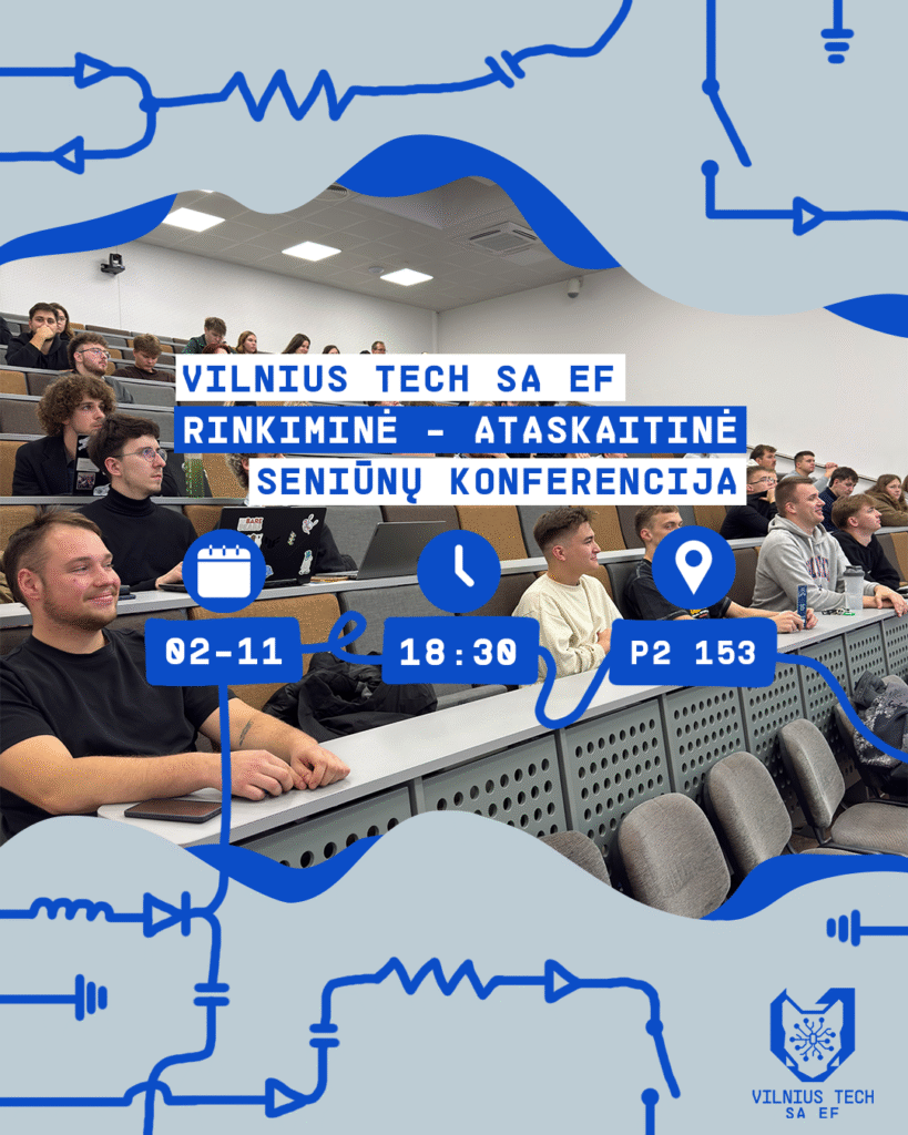 EN | 📢 We invite all students of Vilnius Gediminas Technical University to the VILNIUS TECH SR EF electoral-reportive representative conference, which will take place on February 11 (Wednesday)💙