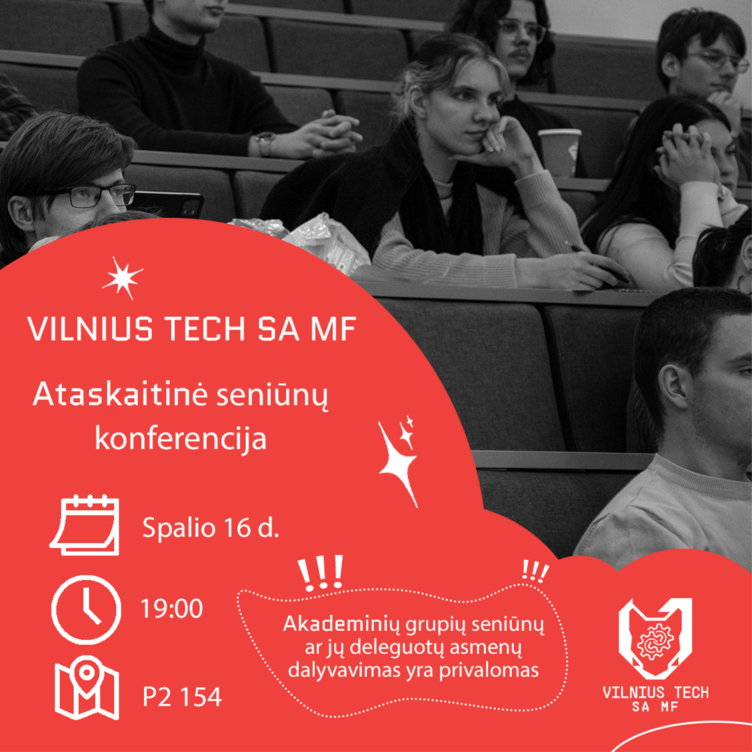 VILNIUS TECH SA MF ATASKAITINĖ SENIŪNŲ KONFERENCIJA / VILNIUS TECH SR MF REPORTIVE REPRESENTATIVE CONFERENCE